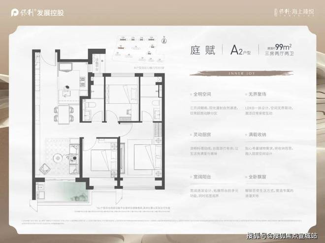 上海宝山保利·海上臻悦售楼处电话/地址:(看房专线)「保利·海上臻悦」营销中心热线/位置:【营销中心预约☎】最新房价优惠折扣,楼盘测评,交房时间,交付标准,周边配套,学区配套,一房一价表,认筹时间,户型图,平面图,高层/洋房/大平层/合院别墅,样板间,房型多样,地铁口距离,区域板块!建筑面积约99㎡3房2厅2卫的户型十分优秀!全明空间+全卧飘窗+灵动厨房+宽阔阳台的设计也是细节满满!保利海上臻悦售楼处电话