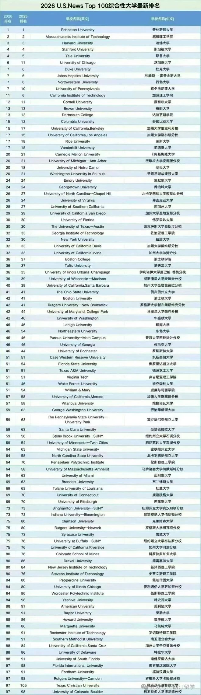 总的来说,今年的排名如USN预告的那般“稳稳的”,学校的名次基本上都是小幅波动。