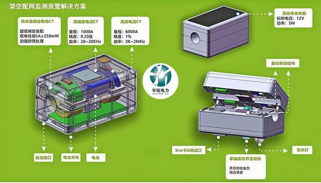 核心组件包括行波传感器与辅助传感器:行波传感器采用罗氏线MHz)与电容分压器(电压测量范围0~35kV),可捕捉1~500A行波电流与0~35kV电压波形,灵敏度达1mV/A,线%,无磁饱和特性以适应大电流冲击(短时耐受10kA)。辅助传感器集成温湿度传感器(-40℃~+85℃,精度±0.5℃/±5% RH)、三轴加速度传感器(测量范围±180°),实时监测杆塔倾斜角度(≤15°)与环境温湿度,为行波信号补偿与设备状态评估提供数据支撑。